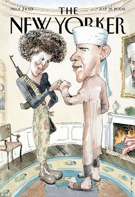 I decided to keep mum on the issue because I’ve gotten a bit tired of complaining. But the NY Times article reveals something interesting about Condé, its owner Si Newhouse, and the company’s decision to use that cover: “More than almost anything else, acquaintances say, Mr. Newhouse delights in the buzz his magazines routinely create. He welcomes controversies, like the recent brouhaha about the Obamas-as-terrorists cover of The New Yorker. What tickles him often challenges convention, often embraces the new or novel, and often sells.”