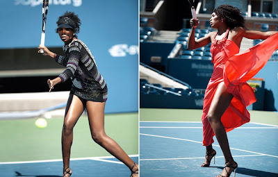 Bossip has hot pics of the Williams sister rocking couture on the court for Harper’s Bazaar:
