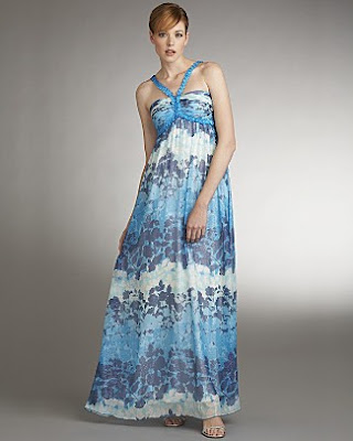 For a similar look, Adriana found this $220 BCBGMAXAZRIA Silk Lurex Shadow Bloom Print Halter Gown: