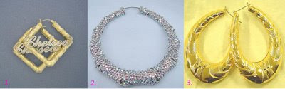 1. Personalized Gold Square Bamboo Earrings, $290. 2. Swarovski Door Knocker Earrings, $154 3. Tear Drop Door Knockers, $25~Adriana