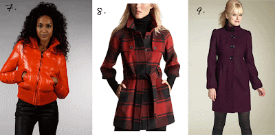 1. J.Crew Classic Peacoat, $225. 2. Marc by Marc Jacobs Check Print Coat, $340. 3. Steve Madden Stand Collar Coat, $98 (Plus, $119). 4. Express Mod Wool Coat, $168. 5. Calvin Klein Split Lapel Wrap Coat, $258. 6. Soia & Kyo Diagonal Stitch Jacket, $185. 7. ADD Down Jacket, $365. 8. Gap Plaid Belted Coat, $97. 9. Guess by Marciano Barrel Shaped Coat, $148.