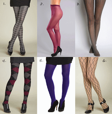 1. Hue Houndstooth Sweater Tights, $28. 2. Falke Baroque Tights, $45. 3. Pin Stripe Floral Tights, $14. 4. Hue Argyle Tights, $18. 5. Armani Exchange Opaque Tights, $19.50. 6. Nordstrom Double Diamond Tights, $12.