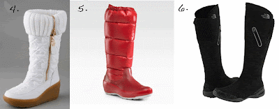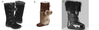 1. Ecco Women’s Winter Zone Boot, $180. 2. Cougar Cutie Boot, $58. 3. Michael Kors Altitude Wedge Boot, $440. 4. Juicy Couture Snow Zip Quilted Wedge Boot, $228. 5. Moncler Tall Bubble Boots, $500. 6. The North Face Women’s Hailey Boot, $160. 7. Sporto Women’s Gojo Boots, $80. 8. Muks Women’s Original Mukluks, $336. 9. Burberry Women’s Fur Trim Snow Boots, $595.