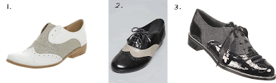 1. Pour la Victoire Women’s Oxfords, $126. 2. Jeffrey Campbell Wing Tip Bootie, $100. 3. Stuart Weitzman Mailcall, $182.