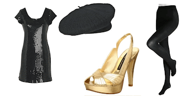 Delia’s Fiona Sequin Dress, $59.50; Target Merona® Cashmere Beret, $20; Chinese Laundry Women’s Burnette Pump, $39; Spanx Black and Midnight Reversible ‘Tight End’ tights, $20.
