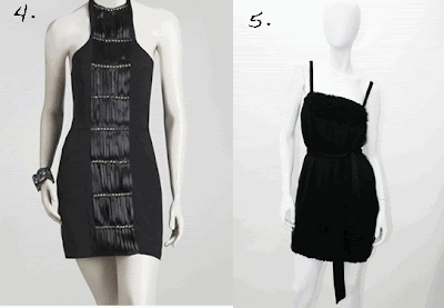 1.Express Ruffle Bottom Tank Dress, $98. 2. INC International Concepts® Lace Turtleneck Dress with Bell Sleeves, $99. 3. Arden B Fitted Panel Dress, $98. 4. Arden B Rivet Halter Dress, $148. 5. Alice + Olivia Black Floral Poof Dress, $149.