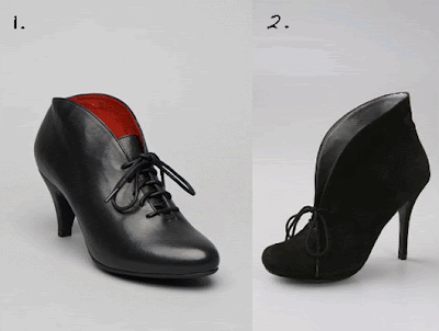 1. Jeffrey Campbell Lace Up Bootie in Black, $124. 2. Jeffrey Campbell Di High Heel Cuff Bootie, $185.