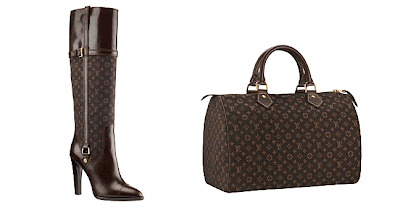 Left to Right: Louis Vuitton Jodie Monogram Mini Lin High Boots, $1,510. Monogram Mini Lin Speedy, $775.