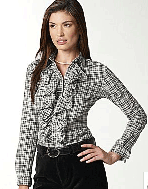 Nene better work! Adriana searched and said, “I couldn’t find NeNe’s exact shirt, and searched several sites… The closest I could find was this $36 American Living Ruffled Plaid Shirt….“
