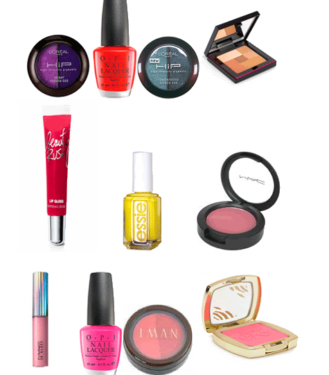 Pictured: L’Oreal HIP Metallic Duo Sculpted, OPI Nail Color MonSooner or Later, L’Oreal HIP Metallic Duo Magnetic, Victoria’s Secret Mozaic Bronzer, Victoria’s Secret Beauty Rush Lip Gloss Cherry Bomb, Essie Nail Polish Shorty Pants, 8. MAC Blushcreme Laid Mac Lipglass Strawberry Blonde, OPI Nail Color I’m India Mood For Love, Iman Blush Duo Posh, KLS Makeup Eyeshadow.