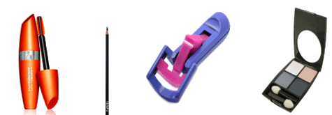Pictured: Cover Girl Lash Blash, NARS Eyeliner Kohl, Maybeline Eyelash Curler, L’Oreal Eyeshadow Quad Smoke.