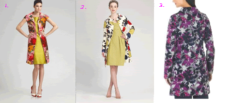 1. Oscar de la Renta, $2,490. 2.Moschino Cheap and Chic Damask Coat, $895. 3. Thakoon for Target Canvas Floral Trench, $45.