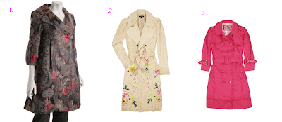 1. Nanette Lepore Brocade, $330. 2. Roberto Cavalli Hand Painted Trench, $5433 3. Juicy Couture Belted Trench, $243.