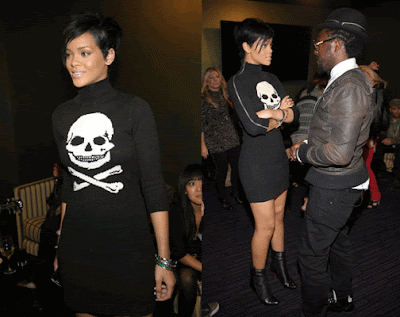 Our fave style subject Rihanna went for rocker chic in a Betsey Johnson Skull Zipper Sweater dress and Louboutin booties…