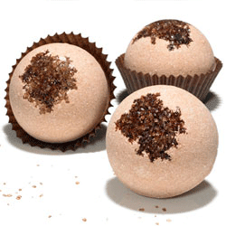 …The fizzy bath bomb leaves skin soft, smooth, and richly scented with chocolate, honey and a touch of sweet vanilla bean. Looks good enough to eat!