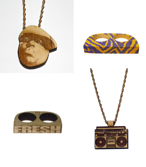 Always on the look out for cool, I stumbled across the website for New York based company Good Wood, which makes hip hop inspired necklaces, two finger rings, and earrings out of wood: