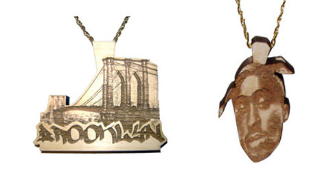 Left to Right: Brooklyn Bridge Pendant, $22; Tupac Pendant, $18.