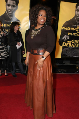 Former beauty queen Vanessa Wiliams opted for an iridescent catsuit for her album listening party–eek! Boston says, “For mature women, less is more! Add touches of shiny fabrics (like patent leather) to your outfit to stay modern.” Oprah does a smash up job, wearing a long skirt in glossy leather: