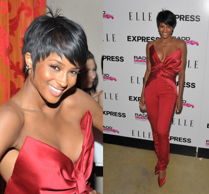 Ciara rocked a strapless red Marchesa jumpsuit for an Express and Elle Magazine event the other night:
