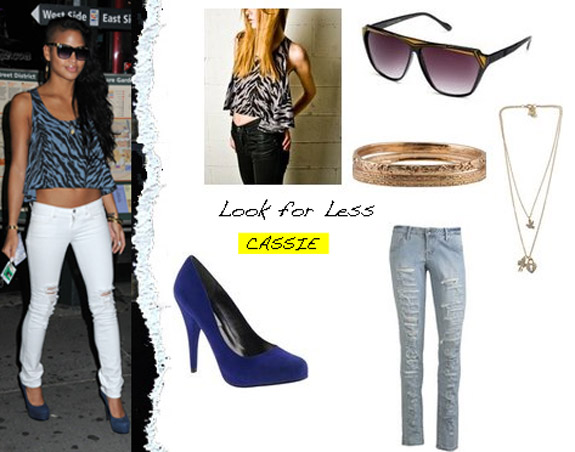 She wore a cropped zebra print top, ripped jeans, and platform blue pumps that showed off her slim frame. Go for a similar concert look with these affordable separates: