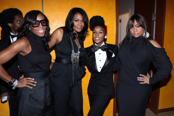 According to Red Carpet Fashion Awards, Ashanti is rocking these $650 Givenchy Western platform sandals in beige with a Louis Vuitton Fall 2009 blazer.