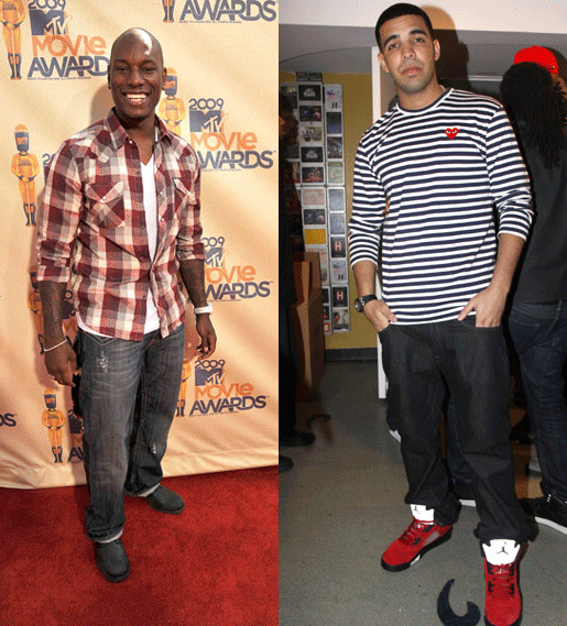 Drake and Tyrese take steps back from slim cut jeans and focus on a more straight, relaxed fit with a darker wash. You don’t want to feel too constricted and washed out in an already drab season. Get the look with these options: