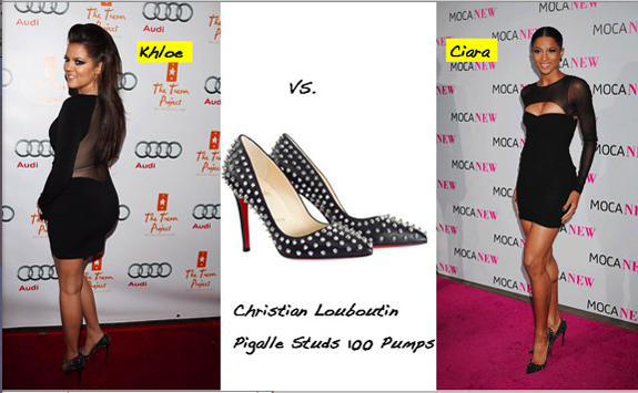 Ciara wore the versatile stilettos with a little black dress with a sheer sleeve and shoulder panel, and Khloe Kardashian went for a similar look with a black cocktail adorned with sheer back detail: