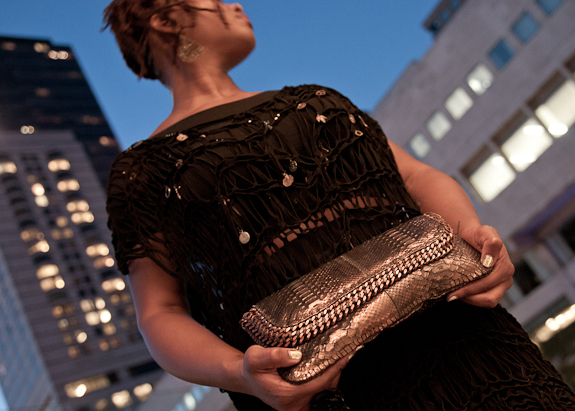 So far I’ve been to lots of fun shows like Charlotte Ronson, Monique Lhuillier, Nicole Miller, and more. I’m covering the collections for Vogue.it and Essence.com, which means lots of writing, exhaustion, etc (ha). For day 2, I opted for ease in a knit Camilla Woodstock dress worn over an American Apparel crop top and BCBG black skirt: