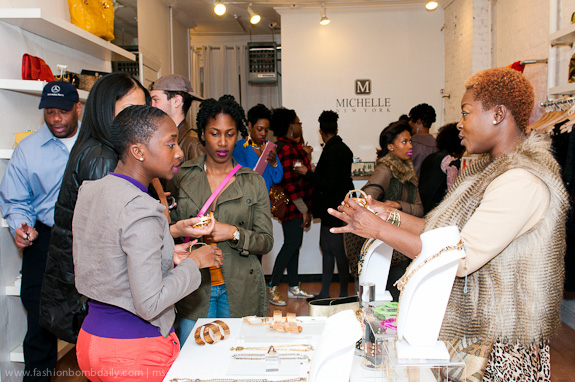 If you couldn’t make it, we missed you! But be sure to pop by Michelle New York (376 Atlantic Ave., Brooklyn, NY 11217) if you ever find yourself in Brooklyn. In addition to having oodles of chic pieces, the accessories are bananas! And if you see something you like and live out of state, give them a call at (718) 643-1680 to inquire about prices and shipping.