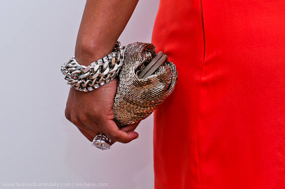 As for my outfit, I was dipped in all Michelle New York design, including a one shoulder tangerine dress and sparkling jewels: