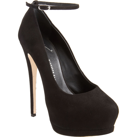 Her double platform pumps have a 5.75″ heel.