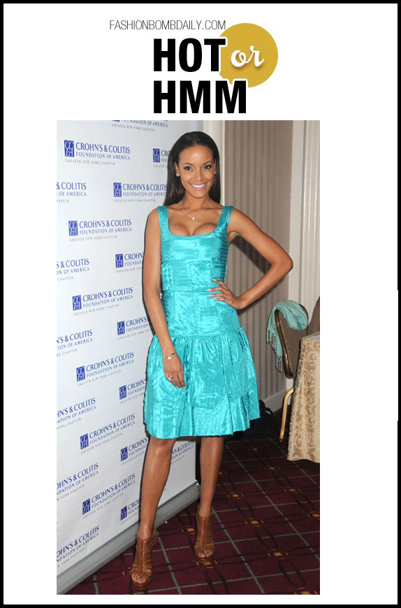 Selita Ebanks was spotted at the Crohn’s & Colitis Foundation of America’s 19th Annual Women of Distinction Luncheon in New York City. For the occasion, she wore a turquoise knee-length gown with $1,219 Alexander McQueen Leather Multi Strand Heels: