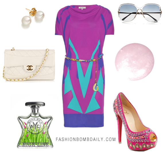 Cici writes, “I have the pink Christian Louboutin Bollywoody Peep Toe Pumps and want to wear them to my nephew’s high school graduation. Can you suggest something I can rock with them? Obviously I want to look fabulous. 🙂 Thanks!!!”