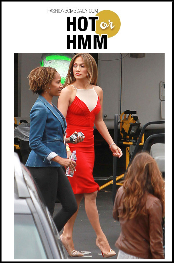 J.Lo’s fashionable turns on American Idol continue! For the Top 5 Live show, the diva opted for a red knee length dress by Yeojin Bae, accented by $1,395 Christian Louboutin ‘Sex’ Pumps: