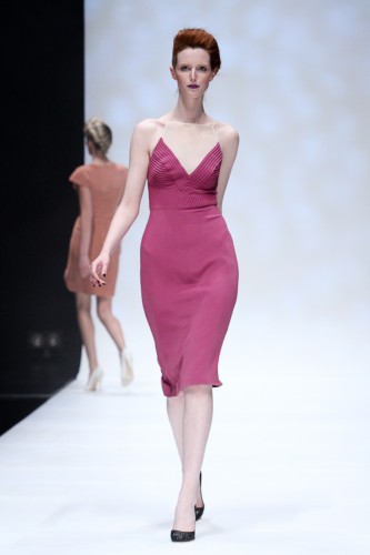 Her Spring 2012 dress features a form skimming silhouette and a ‘nude’ mesh insert.