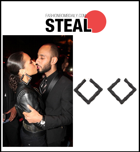 Along with Rocsi, Alicia Keys was also spotted at the 4th Annual Bronx Charter School for the Arts Auction. She kept it simple in all-black but let studs and fun accessories give life to her look with a studded Versace x H&M leather jacket, studded clutch, and $64 Seville Michelle Anastos Black Square Bamboo Earrings: