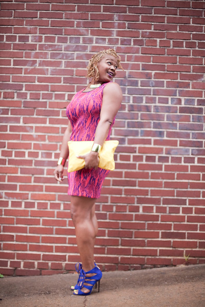 I continued with colors with an American Apparel oversized clutch in yellow, purple YSL lipstick, and gold cuffs by Aqua: