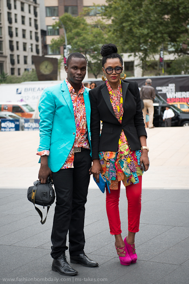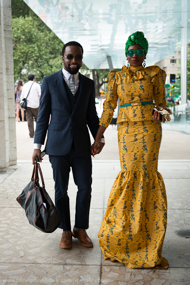 Jean Claude and Sai of the blog Because I am Fabulous always come ready to be photographed! Sai’s green turban and sunglasses added an unexpected quirkiness to her regal printed gown. I’m loving Jean Claude’s sophisticated facial hair!