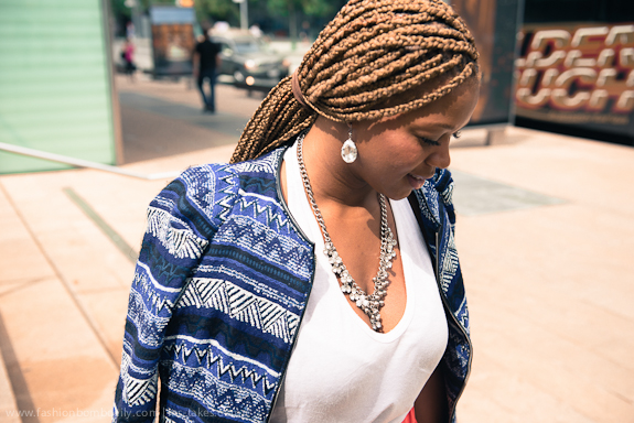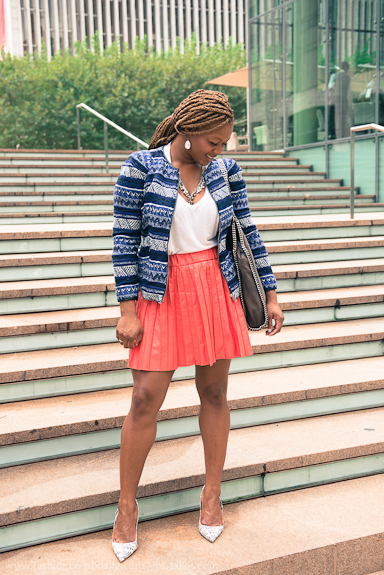 For Day 3, I married my love of blazers and preppy skirts with color in a printed cardigan from Zara along with a Karl Saatchi pleated faux leather mini skirt.