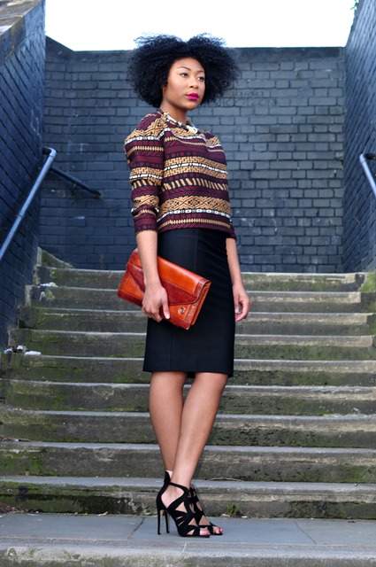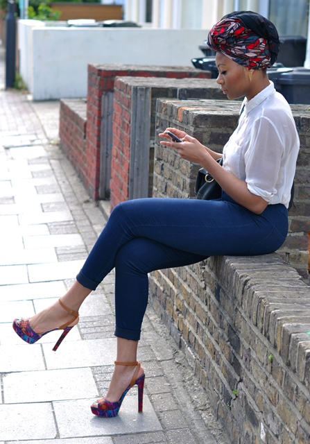 ” Staying true to my personality and individual sense of style, I enjoy styling my blazers with textured shorts/skirts or my plain shirts/blouses with a vibrant head wrap (that I create using raw fabrics that I purchase from my favourite East London market stalls and fabric stores). “