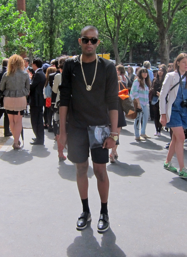 Angelo Elizabeth of the blog King-Elizabeth.com added interest to an all black look with a gold chain and Givenchy Madonna clutch.