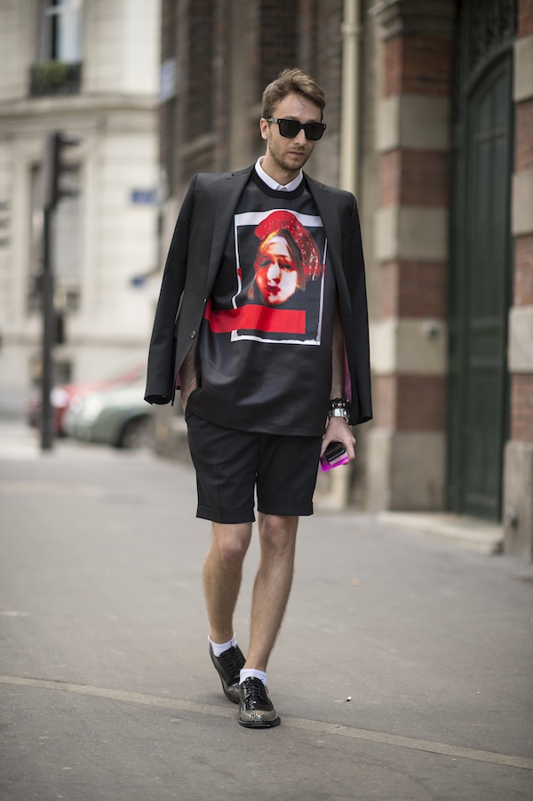 This editor uplifted a pair of shorts with Givenchy’s black and red Bauhaus Madonna tee. Also, I know you guys think only bloggers wear their blazers perched on their shoulders, but it’s actually more of a European look. It works!
