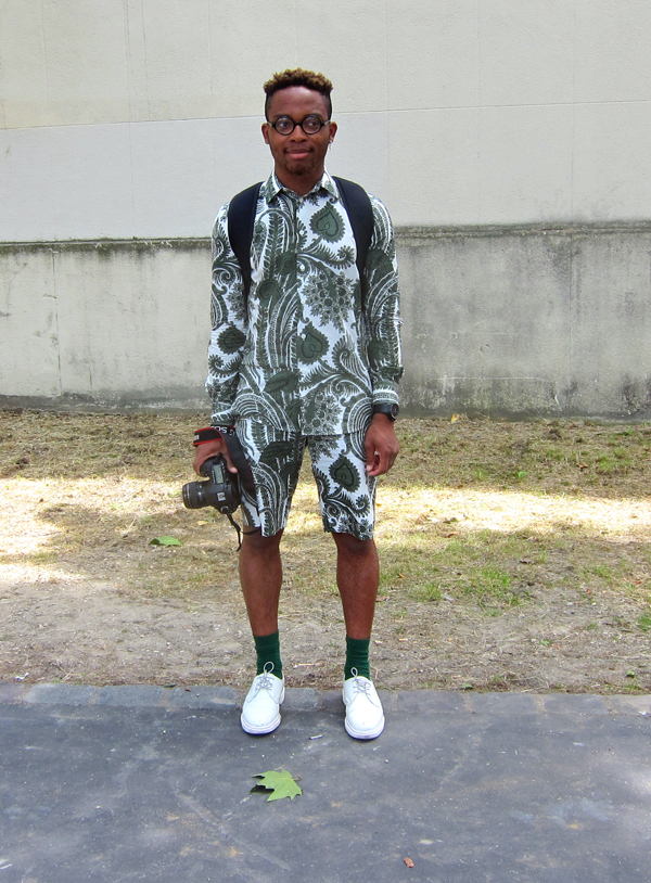 And lastly, prints were on tap for this street style photographer who refused to look at my camera! He complemented a Givenchy paisley button down and matching shorts with green socks and white shoes.