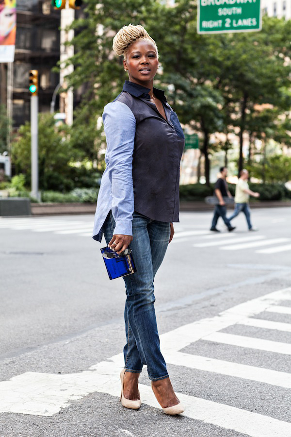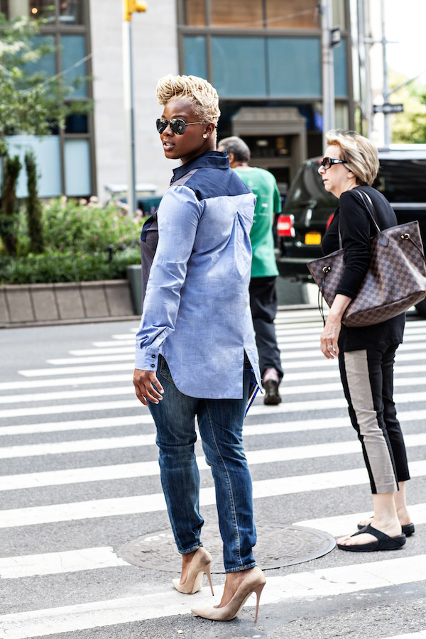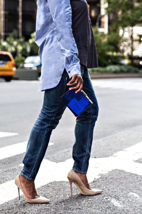 Day 3 of Mercedes Benz Fashion Week was a Saturday, so I opted for casual cool in a denim on denim outfit, comprised of a 10 Crosby Derek Lam Shirt (similar to this) and R13 jeans.