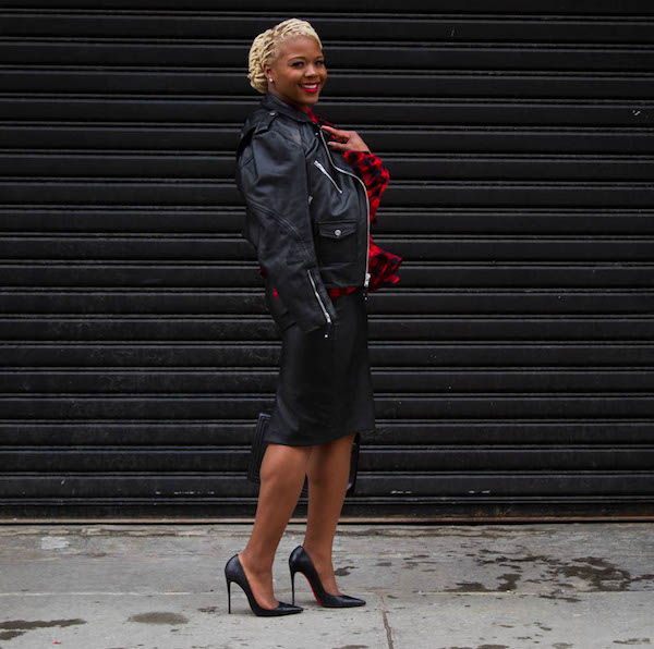 The shirt made enough of a statement on its own, so I kept everything else simple! A faux leather skirt from Zara, Theory leather biker jacket, and my So Kate Louboutins, and I was good to go!