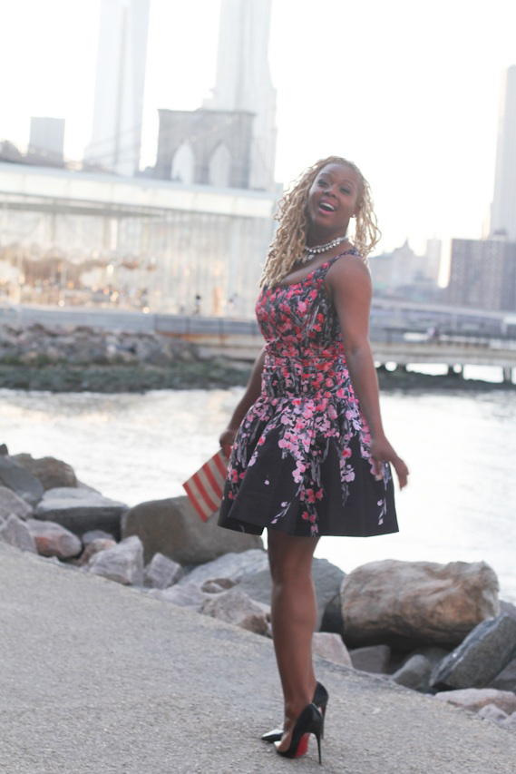 I embraced Spring florals in a Red Valentino rose printed dress, Christian Louboutin pumps, and loads of sparkly jewels.