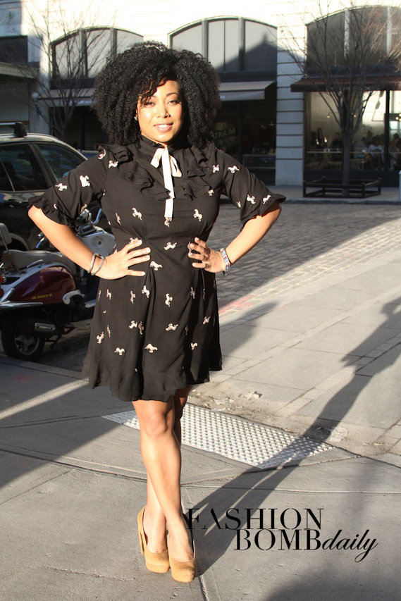 Co-panelist Demetria Lucas struck her signature pose in a cute pussybow frock from ASOS.