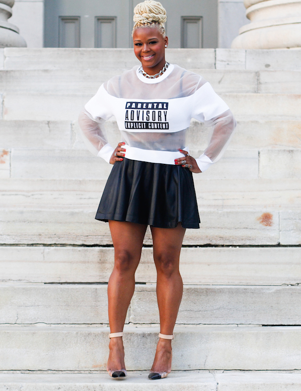 Gotta admit: I totally fell in love with Alexander Wang’s Spring 2014 “Parental Advisory” sweatshirt when I first saw Khloe Kardashian wearing it! And I thought it’d be fun to wear on 106 & Park, since it’s a show all about music. So I splurged!