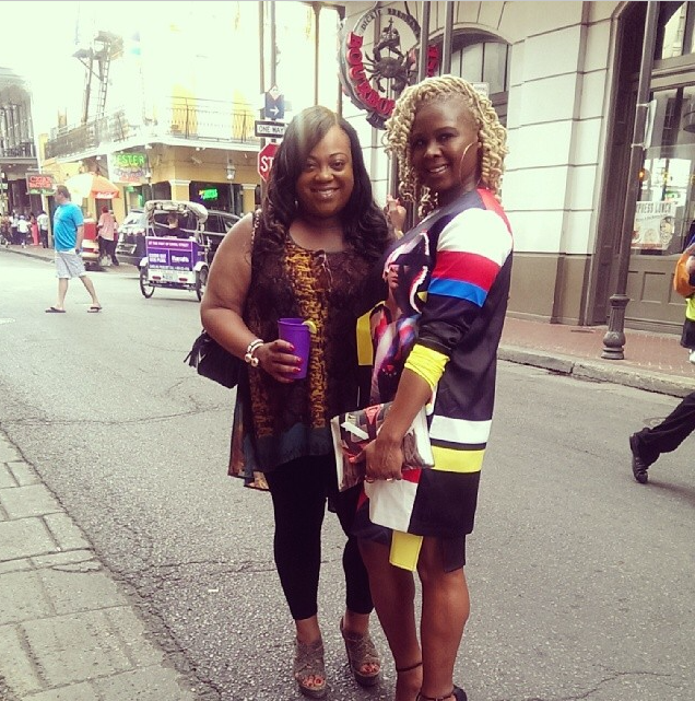 On my way out of the booth, I ran into Trina and Towanda Braxton, who looked gorgeous in green.