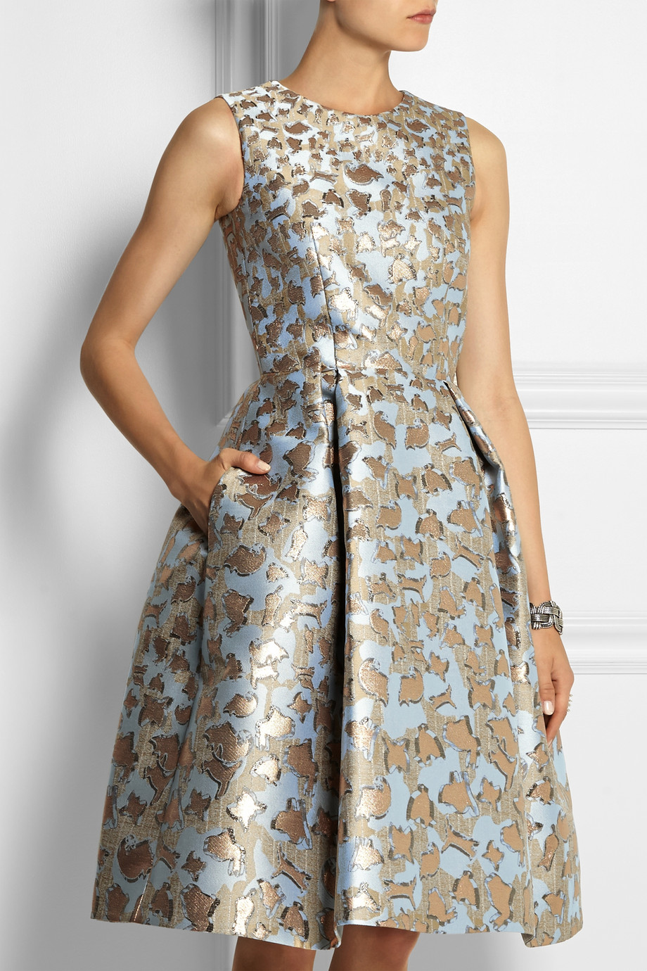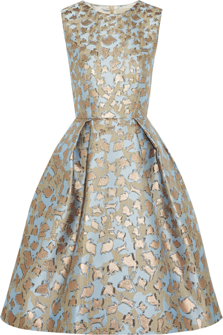 Although I couldn’t find Kerry’s exact dress, I did find the sleeveless edition on Net-A-Porter. The dress boasts a full pleated skirt with a gorgeous sky blue, bronze and gold palette.